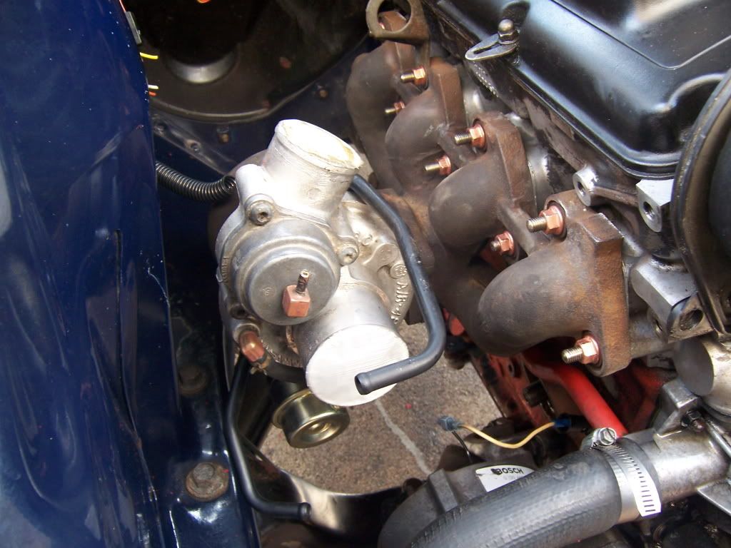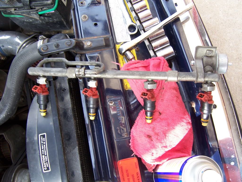 So here is the sequence of events. The 541 went in first ![]() Cut the blue/white wire going to pin 12 and spliced in the Black red wire in it's place ![]() ![]() Injectors went in next. ![]() ![]() Test started the car and it ran ![]() Next off came the intake manifold so that I could install a new manifold gasket and a new Flam Trap Box. ![]() You know I always wandered why my car idled rough. ![]() Off with the N/A Exhaust manifold! ![]() ![]() man that is one dirty engine block ![]() After a clean up I put in new studs followed by the turbo on 90+ Manifold. ![]() ![]() New rule #1 when using a Torque wrench . . . . . .Make sure it works! ![]() Luckily I had an extra stud I fixed that little bluder rather quickly. Hmmm . . . What to hold the top of the radiator to the top of the intercooler . . . . . . . . I know Zip Ties! ![]() ![]() On second thought . . . . . .I think not. ![]() ![]() Much better. Here is how I ended up doing my oil return. I took the pan off and made a compression fitting out of Brass fittings and a lot of silicone sealant. ![]() ![]() I also installed new engine mounts while I had the engine lifted up. 3" Down Pipe and new O2 sensor are now in. ![]() My rewiring job of the AMM wires after i relocated it to the Passenger side. ![]() How my intake looks. ![]() Now for my greatest accomplishment my oil feed and pressure switch set up. ![]() What you see is a 1/4" FNPT brass "T" fitting with 1/4" Bass Bullet threaded into the M14x1.5 threads. Now I know what you thinking "threads don't match!!!" But in reality they are close enough the thread in without leaking. The Oil pressure switch you see there is from a Mid 90's F150. The set up seams to work real well. ![]() So I got her started tonight and it seamed to run great. I'll post more photos later of my Exhaust system after it is completed. ![]() |