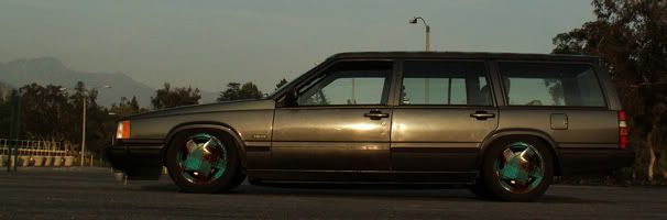 -Estimated cost: ~$300 without a strut upgrade (the ultra-broke ass budget option), add $240 for Boge Turbo Gas (the ghetto alternative, from fcpgroton.com), add $379 for Bilsteins from shox.com (A better approach), add $537.60 for Konis from shox.com (RMO (Rich Man's Option)). If your vehicle doesn't already have upgraded swaybars, it would be a good idea to upgrade them while it is apart, using either IPD Safety Swaybars or Dual Sways if you're on the Turbobricks budget (http://forums.turbobricks.com/showthread.php?t=9587). -Materials: 2x 7" Coil Over Kit (2.08" ID) http://www.colemanracing.com/catalog...oducts_id=1528 2x 2.5"x10" Coil Springs in the rate of your choice (in my case 275lb Suspension Spring Specialists springs) http://www.colemanracing.com/catalog...oducts_id=4097 2x 5"x11" Coil Springs in the rate of your choice (in my case 250lb Hypercoils springs) http://www.colemanracing.com/catalog...oducts_id=6207 4x Shocks/Struts of your choice (in my case Bilstein HD's from shox.com) 2x Volvo 240 Upper Rear Spring perches ($4 each from the local Pick-n-Pull, save the bolts) -It should be noted that a little welding and grinding and drilling may be required; If you were a VolvoSpeeder you might pay someone to do the work necessary for this project, but that is not the turbobricks way. The only tool necessary other than Sockets and Spanners is an angle grinder (a $20 Harbor freight unit will suffice), and a welder (a local welder/exhaust shop is a cheaper approach). -We begin by removing the strut assembly from the vehicle. ![]() -Remove the brake caliper and disk, the coil spring and strut mount (you can borrow a spring compressor from the local autozone or torch the spring until it relaxes), and the strut insert. At this point you should have this in front of you: ![]() -Using your angle grinder, carefully grind out the welds on the factory spring perches, apply BFH if necessary, leaving you with this: ![]() -At this point you can either have the strut tubes milled down a few hundreths (RMO), or use your Angle grinder to shave the strut tube down enough to allow the threaded sleeves to fit over them (The TurboBricks way, and my choice; However, this job used up almost a whole brand new grinding wheel.). Leaving you with this: ![]() -Now you can either weld on stop rings or have a shop do it for you (I had my little brother do it in his Welding class). ![]() -Next, drill out the holes in the upper spring seat to fit the slightly larger volvo strut. -Reassemble strut as shown: (more, better photos coming soon) ![]() -Reinstall front strut assemblies. (photos coming soon) -Moving on to the rear, jack up the car using jackstands on the jacking points, remove wheels, and then lift from the pumpkin again until the tension comes off of the lower shock bolt, then remove it. Release jack and allow rear suspension to droop. Unbolt stock springs, keep the nuts. Now, remember those bolts that you saved at the junkyard? Using them and the nuts you just removed, bolt the stock 240 upper spring perches where the spring retainers were previously located. Insert your new shiny springs, lift up rear end and replace lower shock bolts, reinstall wheels, take the car off the stands and thats that. Upper Spring Seat ![]() Lower Spring Seat ![]() Well, that should be a pretty good guide to coilover suspension on a budget, and I will be adding more photos soon. If you have any edits/suggestions, just post that schizzz below -<3 kyote